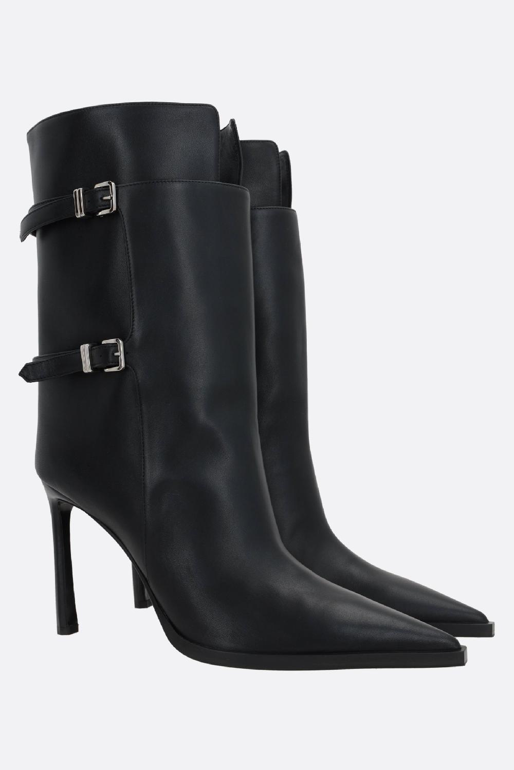 Stivaletto di Sergio Rossi realizzato in nappa color nero. Caratterizzato da chiusura con fibbie laterali, punta affilata, fodere in pelle e suola in gomma. Completa il design il tacco stiletto in legno.